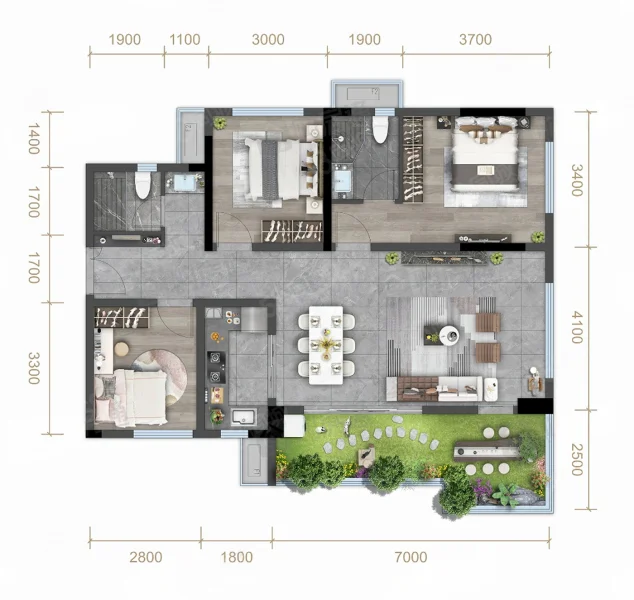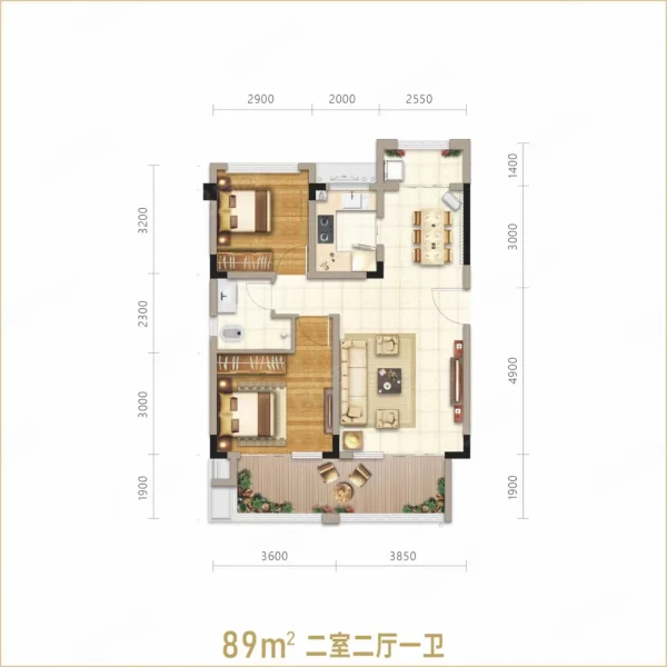 2 室 2 厅 1 卫
