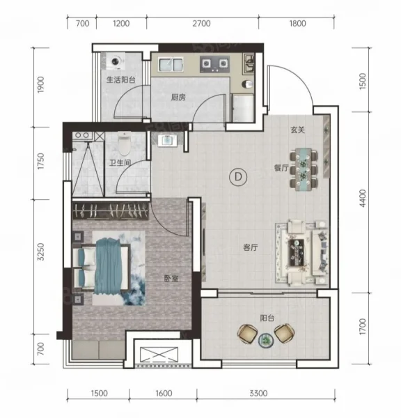 1 室 1 厅 1 卫