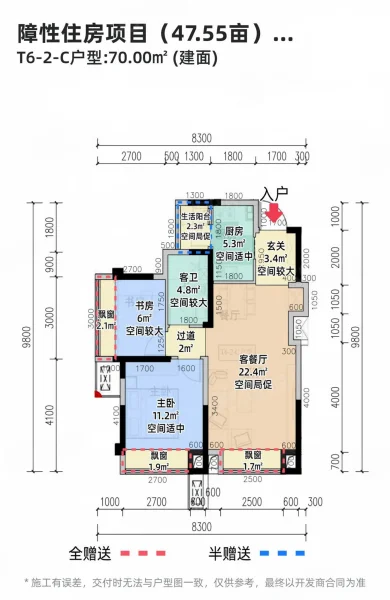 2 室 2 厅 1 卫