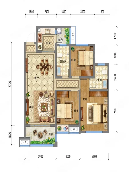 3 室 2 厅 2 卫
