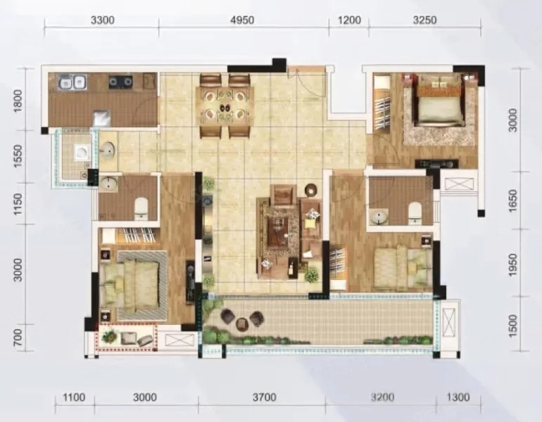 3 室 2 厅 1 卫