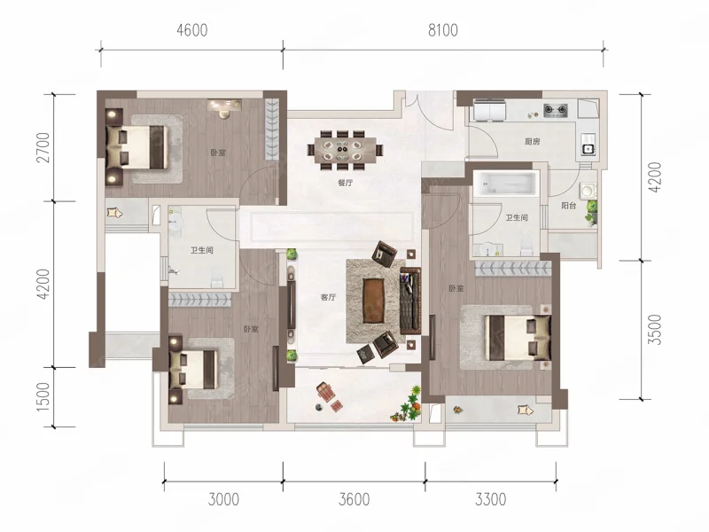 3 室 2 厅 2 卫