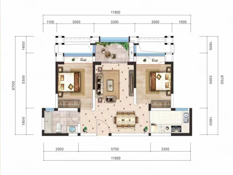 2 室 2 厅 1 卫