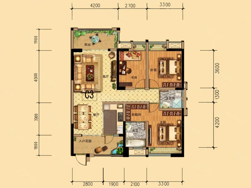3 室 1 厅 2 卫