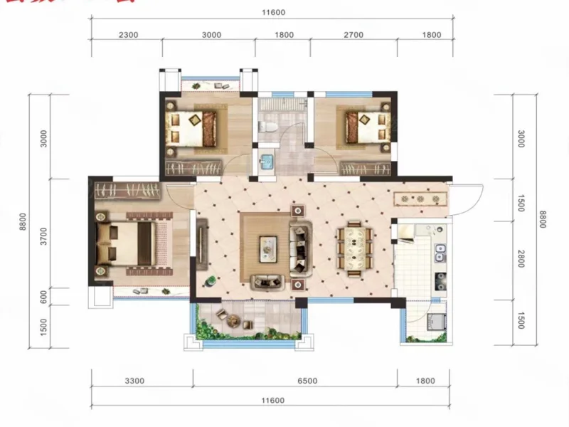 3 室 2 厅 1 卫