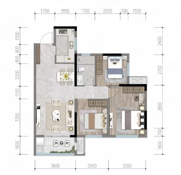 3 室 2 厅 1 卫