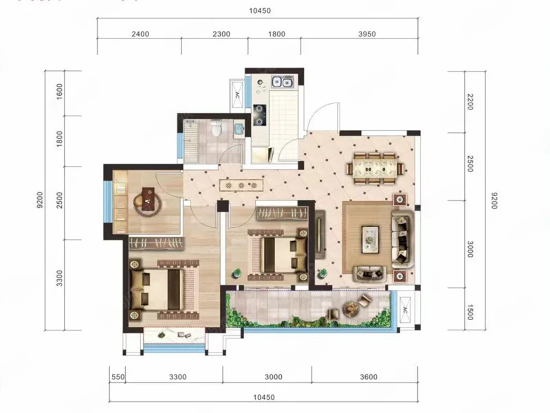2 室 2 厅 2 卫