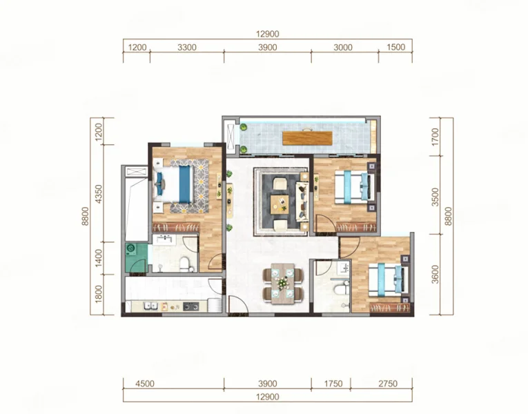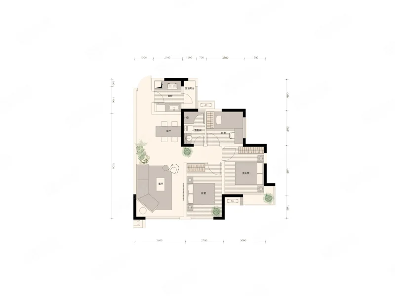 3 室 2 厅 1 卫