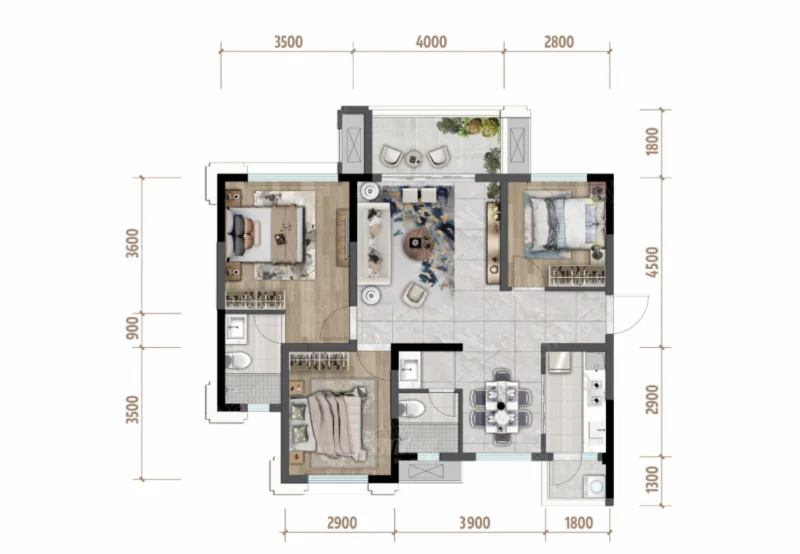 3 室 2 厅 2 卫