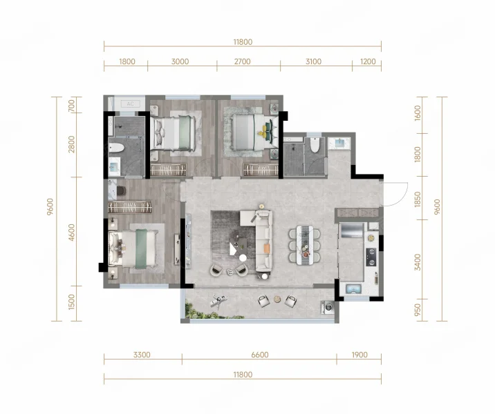 3 室 2 厅 2 卫