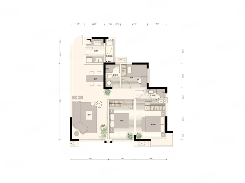 2 室 2 厅 2 卫