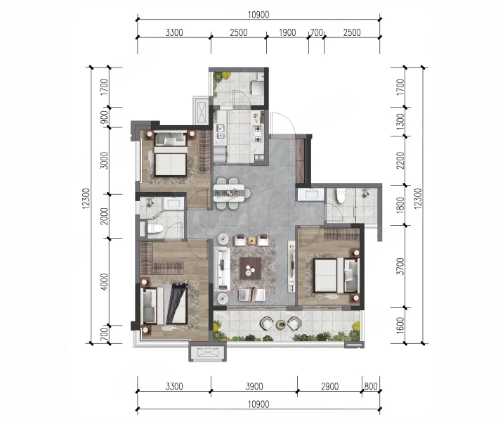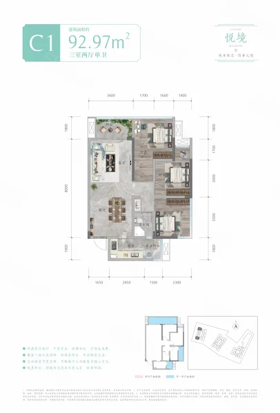 3 室 3 厅 1 卫
