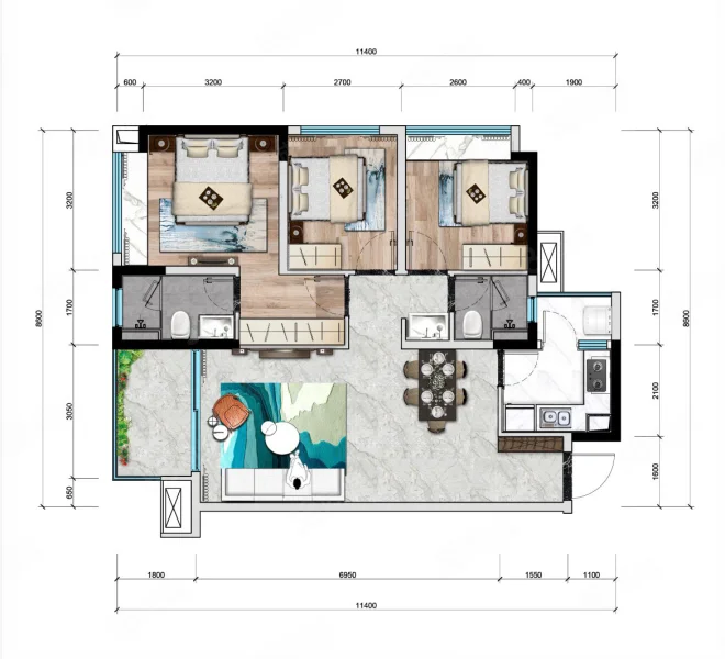 3 室 2 厅 2 卫