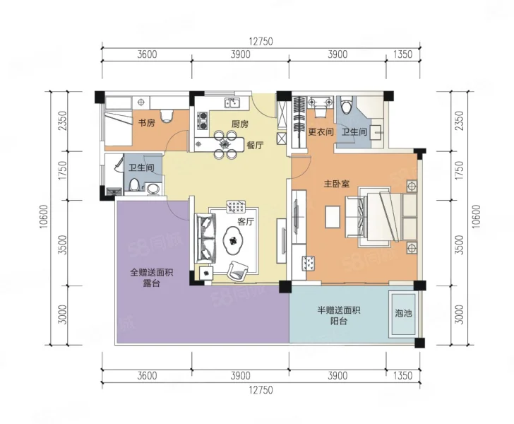 3 室 2 厅 1 卫