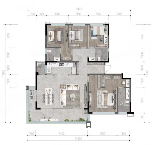 4 室 2 厅 3 卫