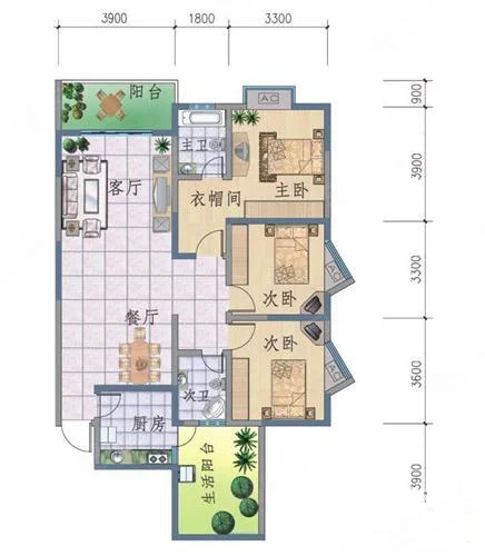 3 室 3 厅 2 卫