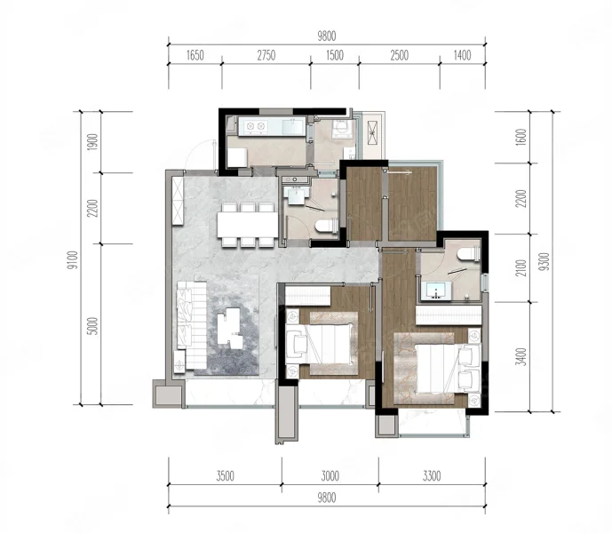 3 室 2 厅 2 卫