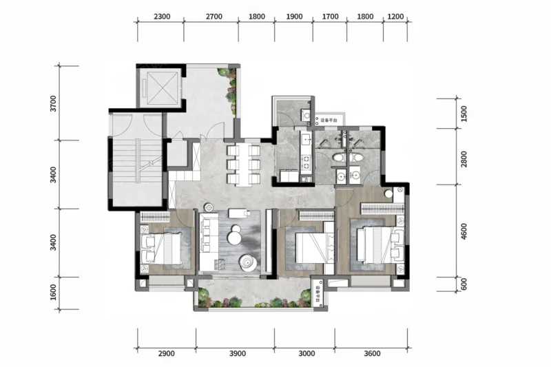 3 室 2 厅 1 卫
