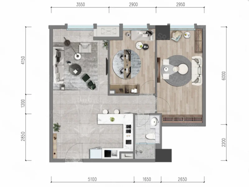 2 室 2 厅 1 卫