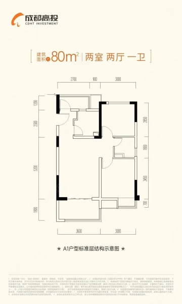 2 室 2 厅 1 卫
