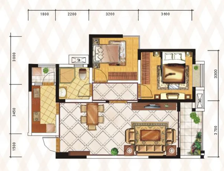2 室 2 厅 1 卫