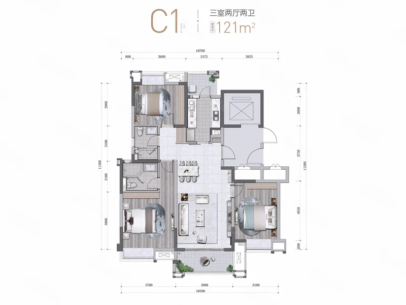3 室 2 厅 2 卫