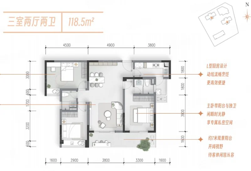 3 室 2 厅 2 卫